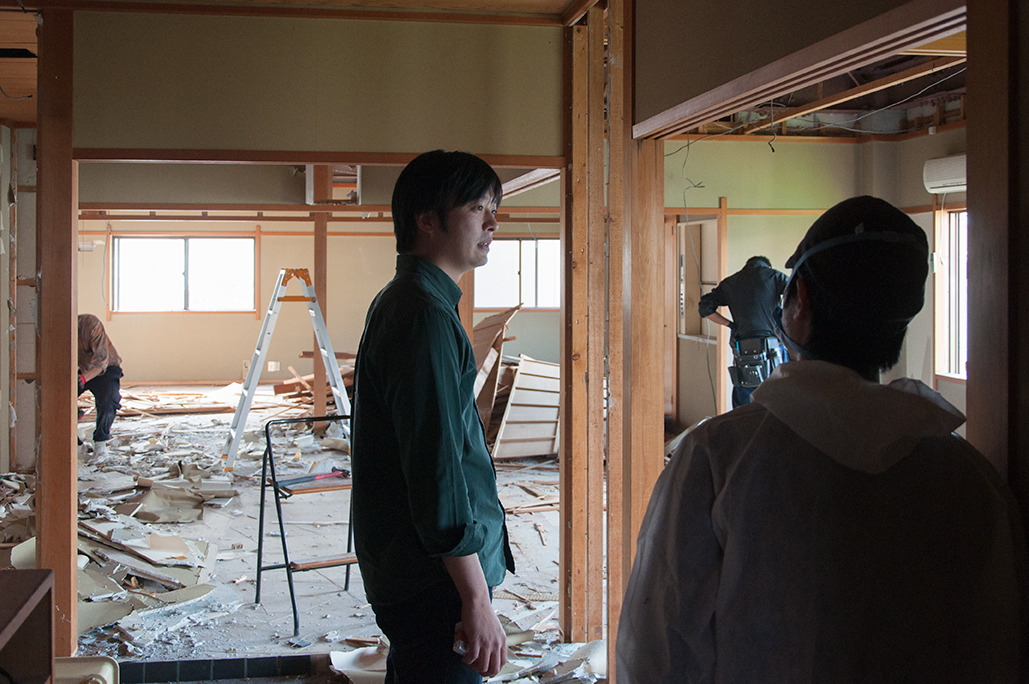 休憩を挟んでお昼からは、dot architectsメンバーのテキパキと手際のよい作業で、壁をこわし天井を落として、夕方ごろには建物がむき出しの姿に変わっていきました。