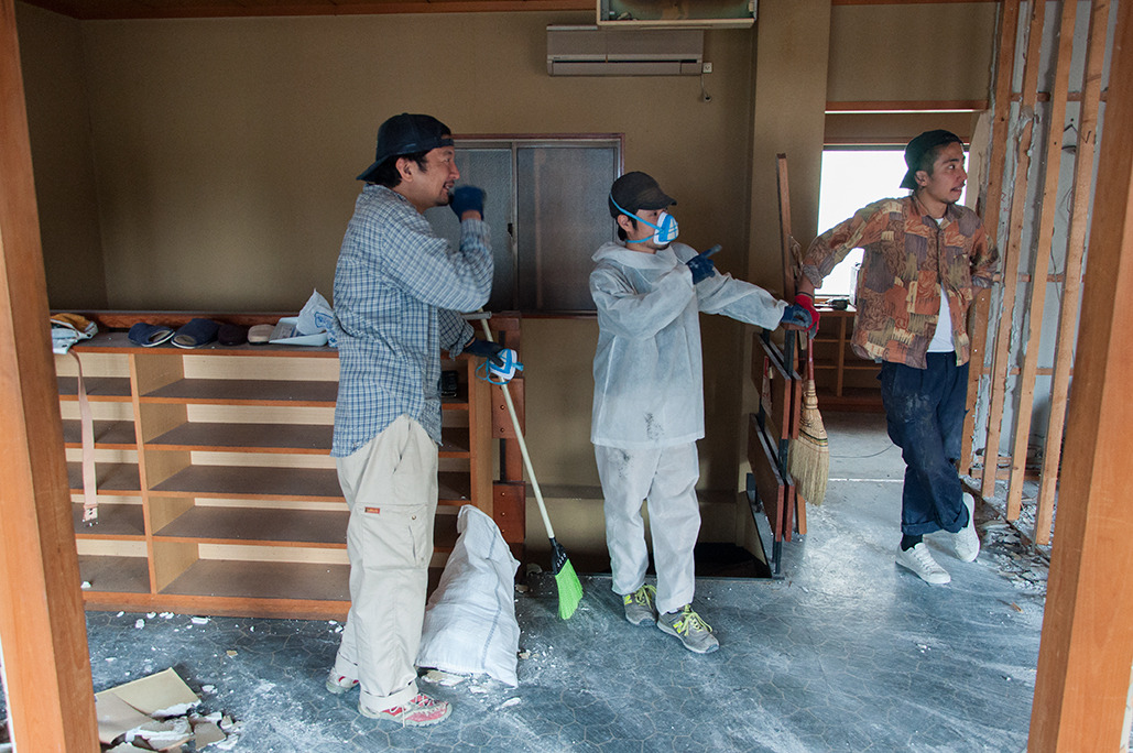 台風も過ぎ、底抜けの青空が広がった解体3日目。昨日、一昨日にくらべて実質の作業は少なく、代わって何度もミーティングが重ねられました。