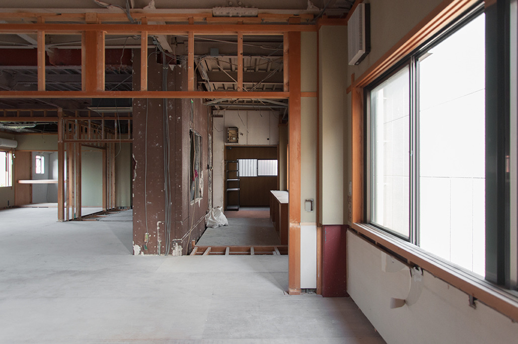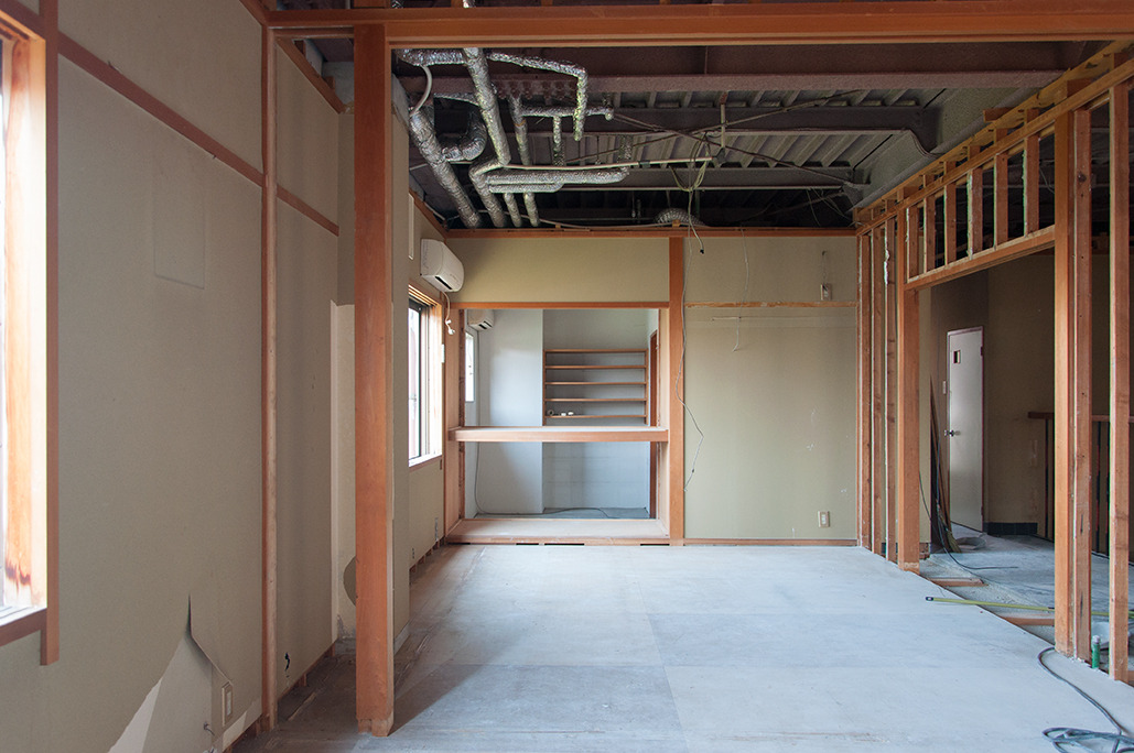 1Fはもともと寿司屋のカウンターがあった場所。みなさんをお迎えするスペースになるのですが、いまいち方向が見えず解体もゆっくり進みます。