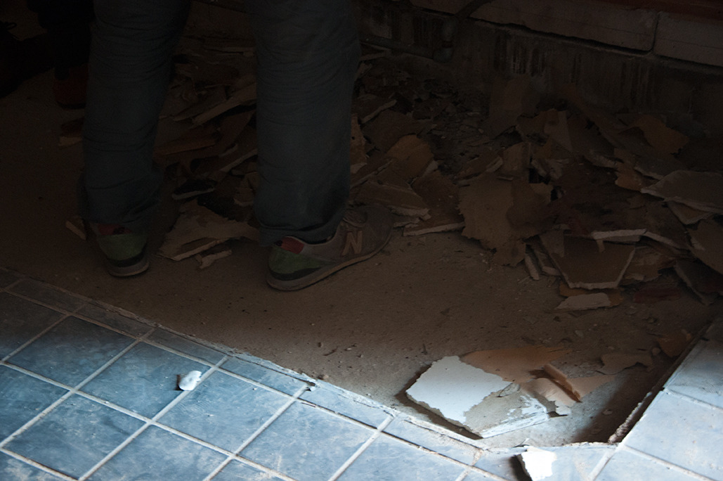 そして、この物件よく見ると2階建の建物から3階建に増築しているようで、バラしてみるとチグハグなディテールが露わに。作業の終わりには、もう一度この空間の必要な要素と、壊してしまう部分のおさらい。解体しながら即興的にどう仕上げていくか考えながら段取りを決めていきます。音響の面を再優先に、ひとつひとつの選択を相談して決定していくのは、愛着が湧き、建物の至るところが好きになってしまいそう。
