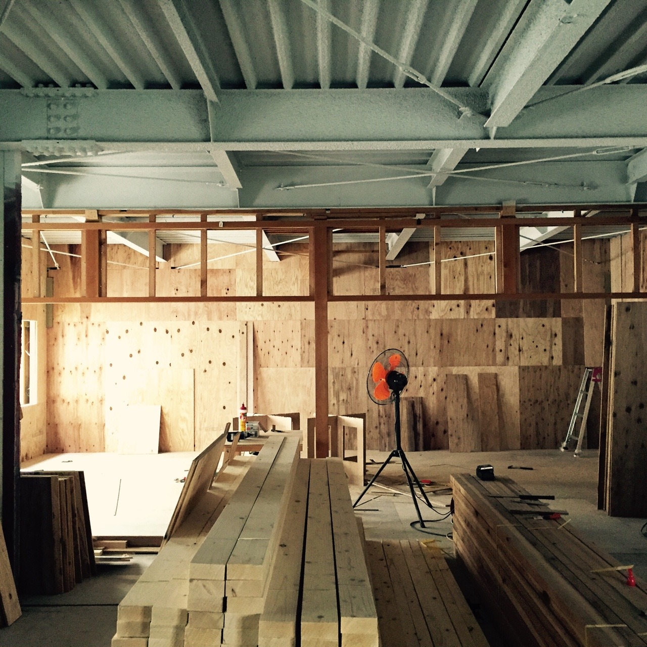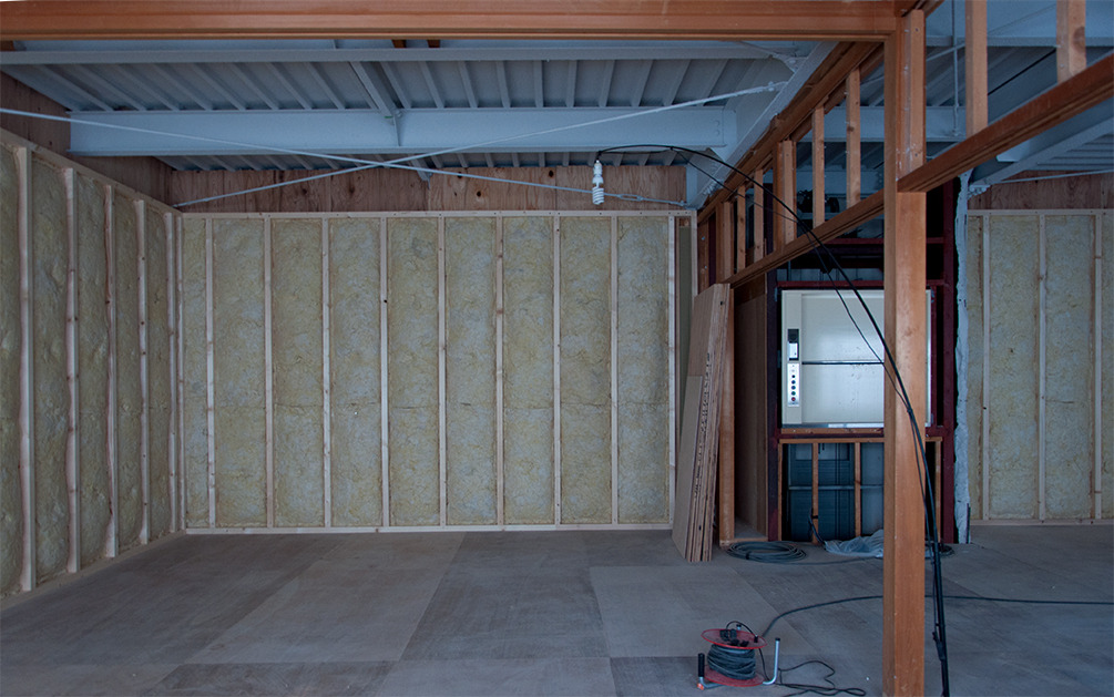 秋もすっかり訪れて、作業がしやすくなった9月中旬。イベント・納品が続き、なかなか報告できていませんでしたが、いよいよ昨日より吸音材であるロックウールの貼り付けがはじまりました。