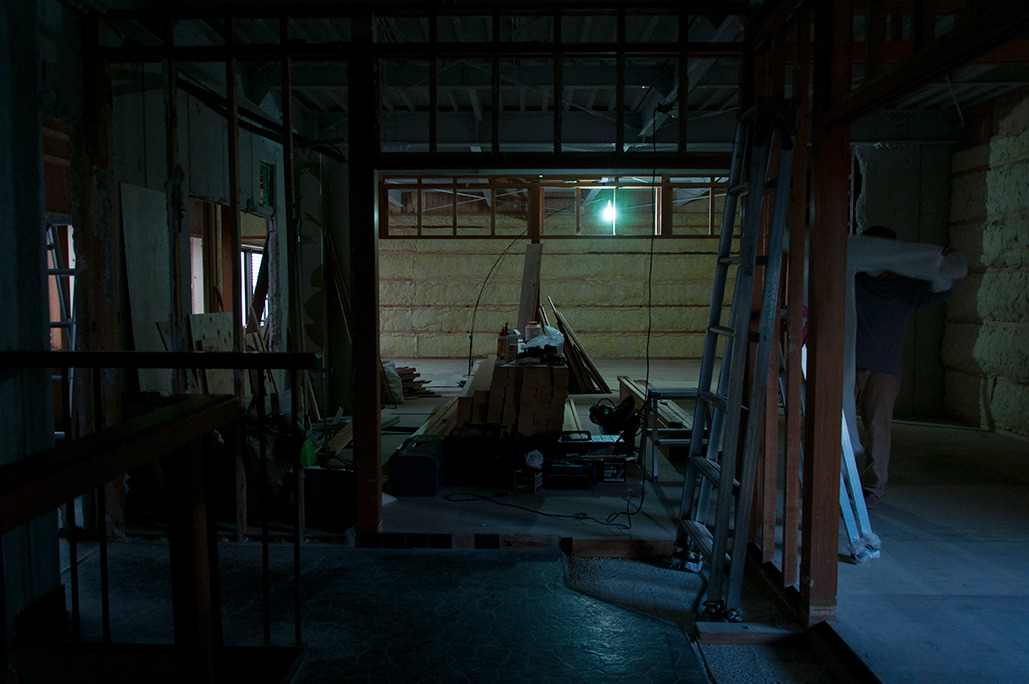 休憩中には何度も手を鳴らして吸音具合を確かめながら演奏にふさわしい空間に仕上げていきます。次の作業日は10日後の、9月25日。この日には壁面への吸音材を貼り終え、床面作業の準備をしていこうと思います。