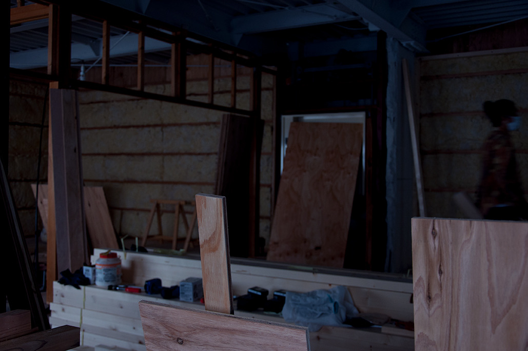 余った木材や工具を片付け掃除し、次回の作業からはいよいよ床面の捨て貼り。工事初期の頃から悩んでいた床に、いよいよ手をつけていきます。部屋がすっきりした状態で音を確認してみると、歪んだ反響のある部分が浮き彫りに。それもどうやら弱くなった床が原因のようなので、次回からの床工事に期待です。