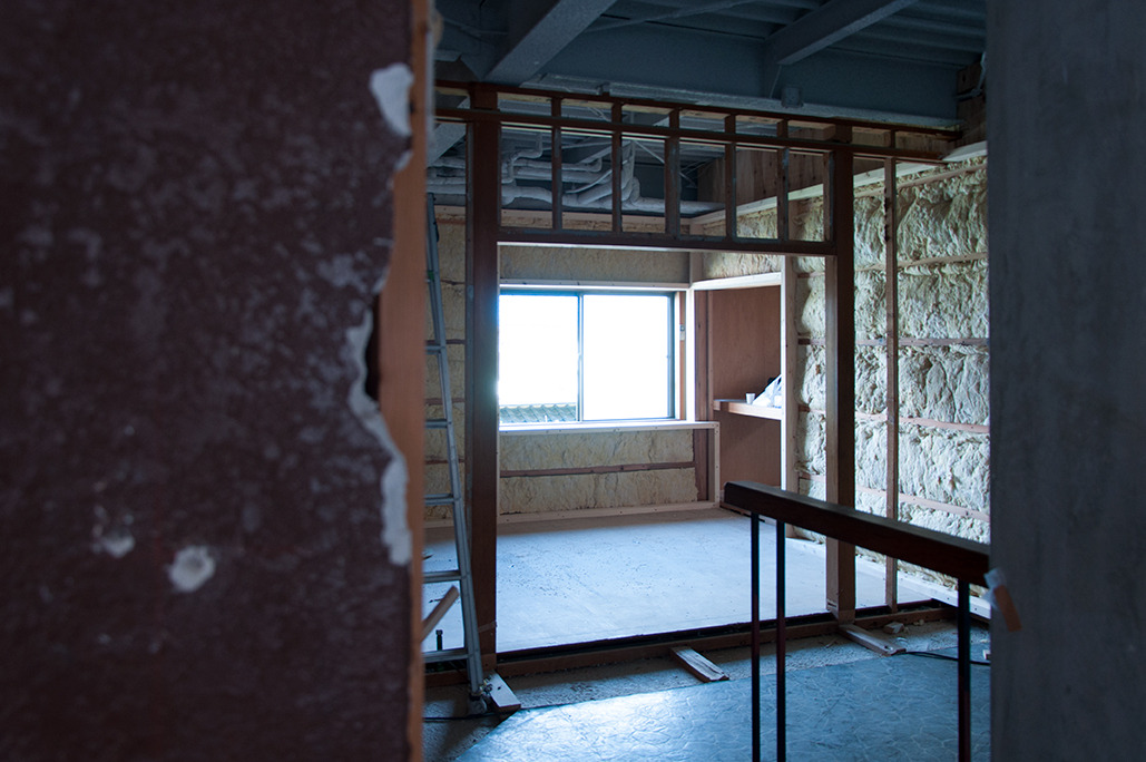奈良の午前中は風があり、暑さも昨日よりはましでしたが、午後からは部屋に吹き込むための窓も壁で塞いでしまうので、ほんのわずかな涼もシャットダウンしてしまい、ふたたび扇風機だけが命綱な一日となりました。スケルトンだった前日からすこしづつ変化が見え、休憩の際、ひいて部屋を見渡すたびにじわじわとやる気がでます。とはいえ、道のりはまだまだです!