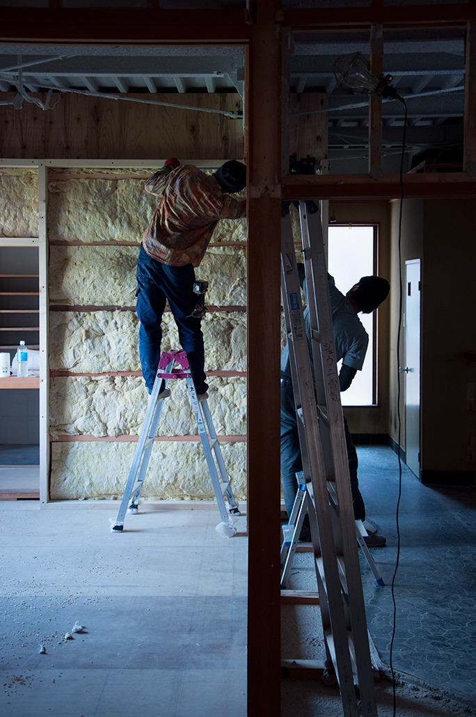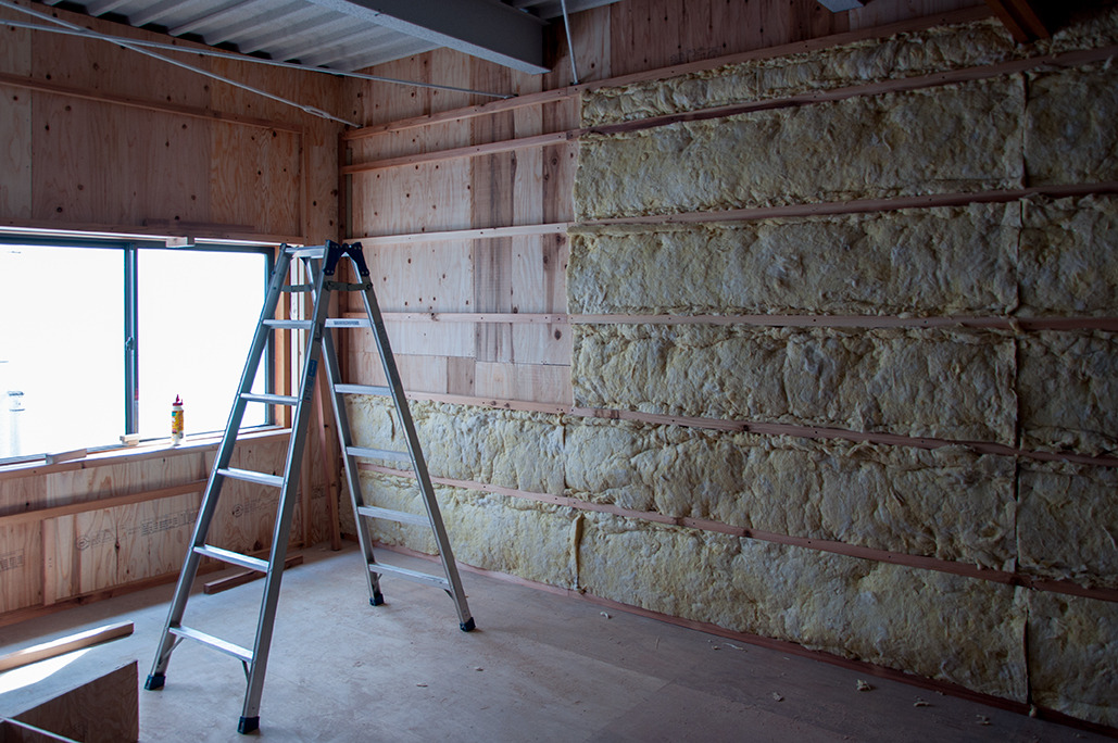 当たり前ですが、ロックウールを貼ると早速音が変わり、耳を近づけると不気味なぐらい無音になるので、現場をぐるぐるまわっていると、すこし酔いそうな気分にも。