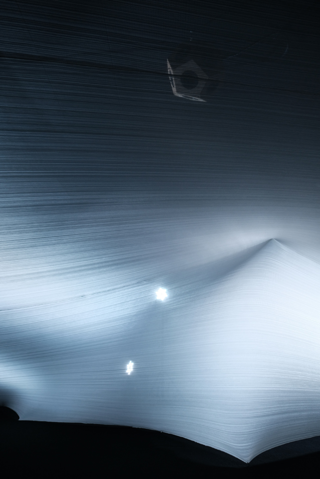 会場はオーガンジーの布で覆われた、トンネルのような、繭のような空間。