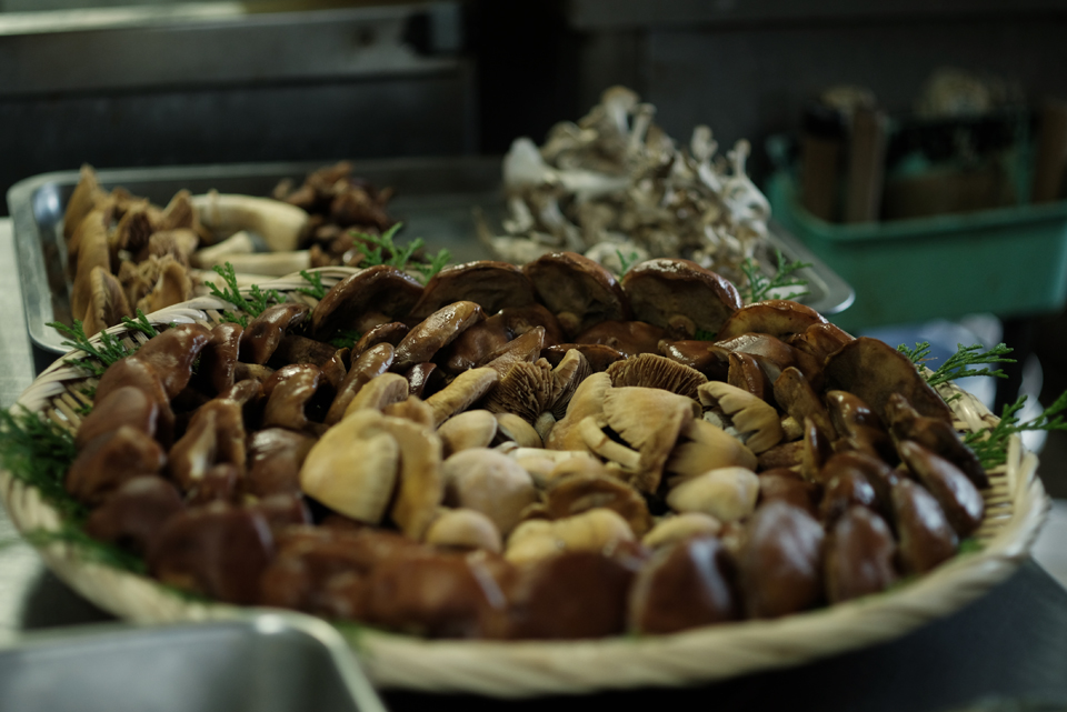 小澤:そうなんです(笑)。ただ、いろはは教わりましたが、実際採取できる場所はひとつも教わっていません。きのこ採りにとって採取地は財産なんです。教わった技術や知恵を手がかりに、図鑑を買って勉強し、実際に歩きまわって地道に探し続け、最近になってようやくまとまった量が採れるようになりました。教えてくれたことへの敬意も込め、お店の目玉になるよう採取も調理も常に工夫しています。いまでは、土地に古くからある偉大な知恵を継承していきたいという思いもありますね。