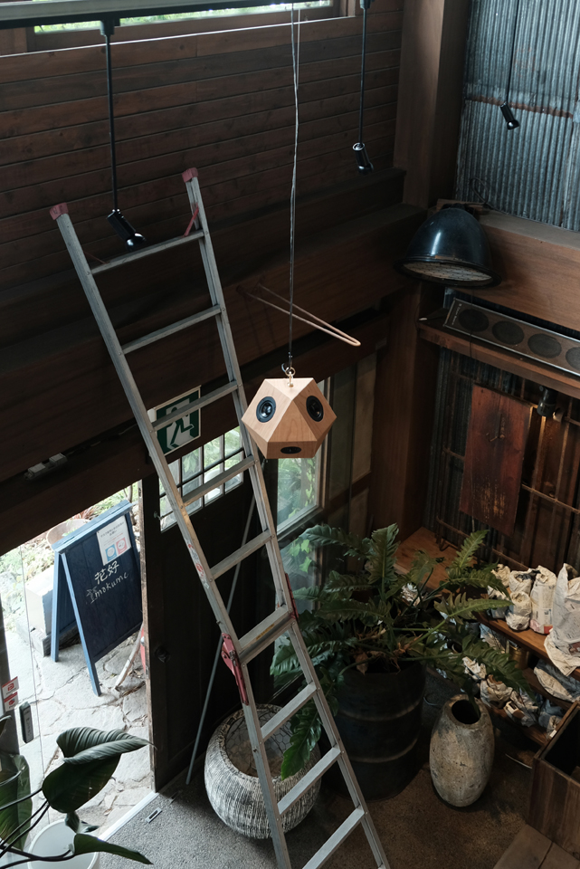 滋賀は彦根にある植物と器のお店「花好mokume」に、14面体スピーカー”sight“を納入いたしました。