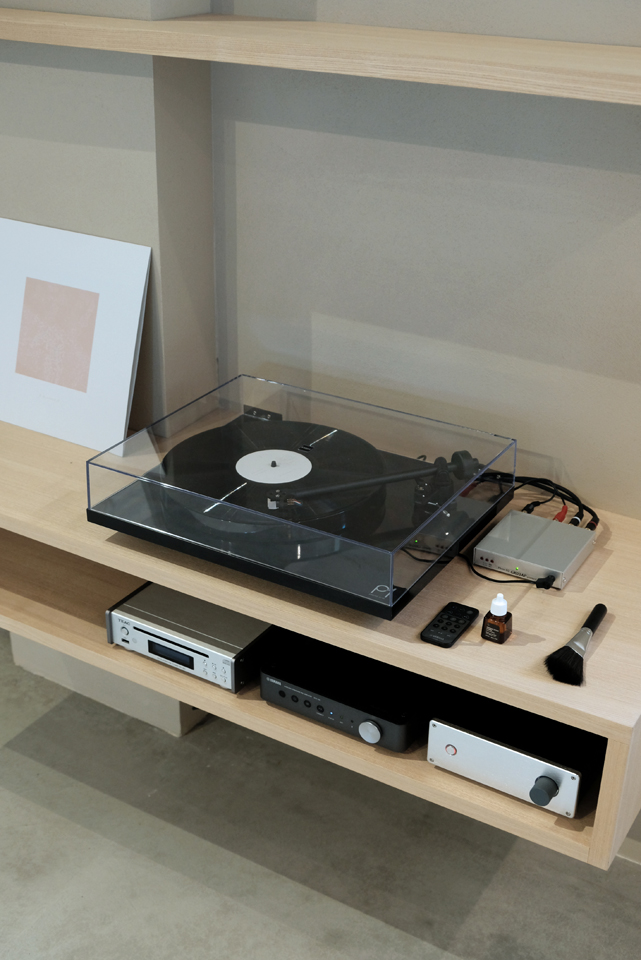 周辺機器は「トータル約20万円で組み合わす おすすめのオーディオ」の記事を参考に取り揃えてくださいました。アナログからCD、ストリーミングまで、シーンに合わせて使い分けられる組み合わせなのにこんなにコンパクト。