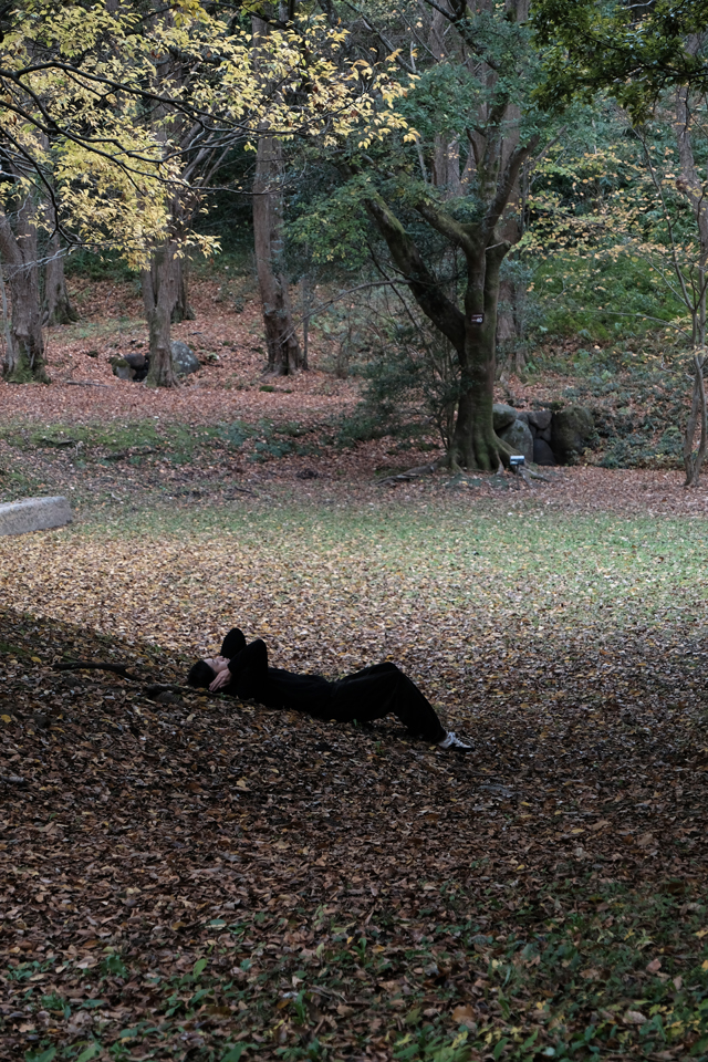 自分の好きな場所を見つけたら、その場で寝そべってみる。マスクをしているせいか、今度は自分の息や心臓の音が聴こえてきます。不思議と自分自身が愛おしくなるような、落ち着きの時間となりました。