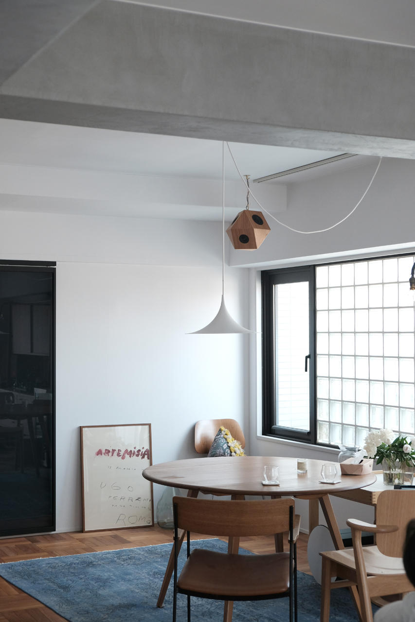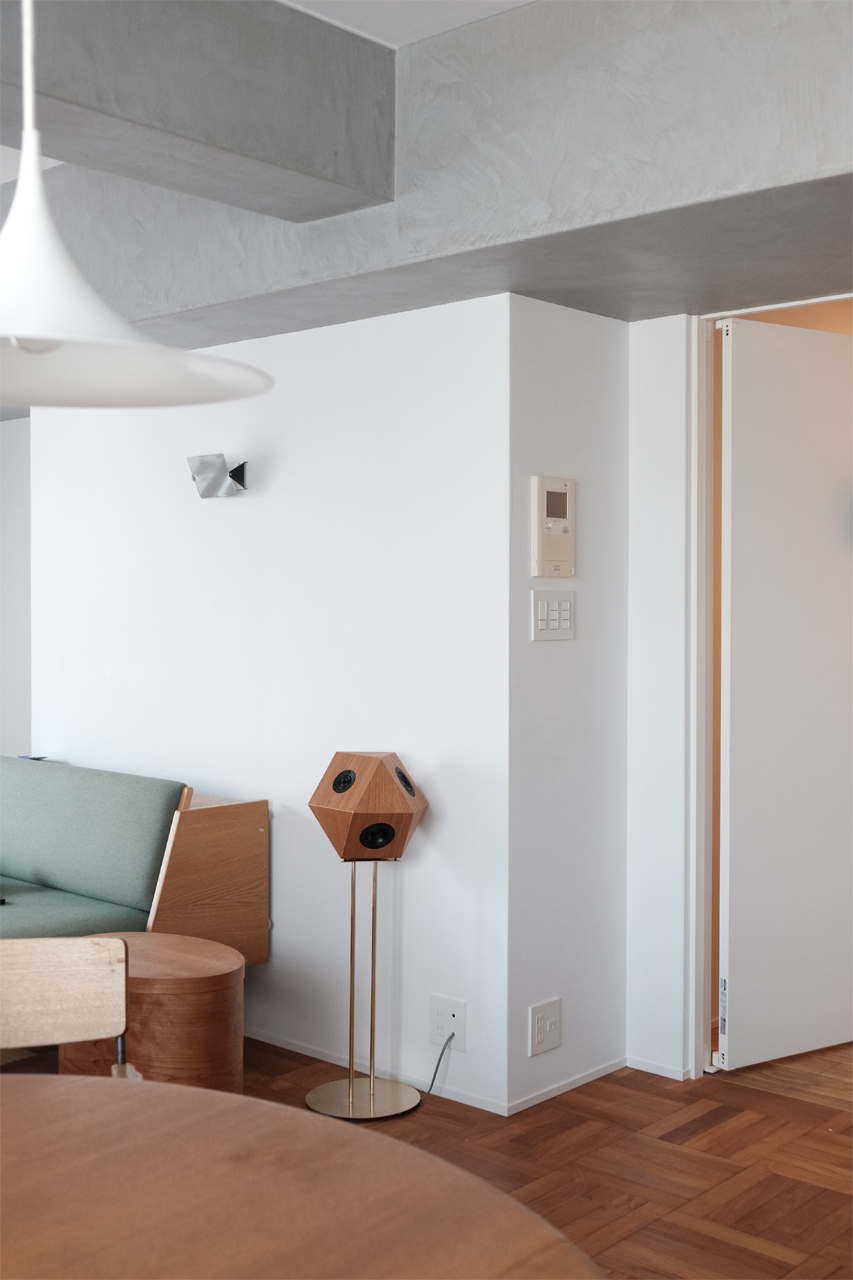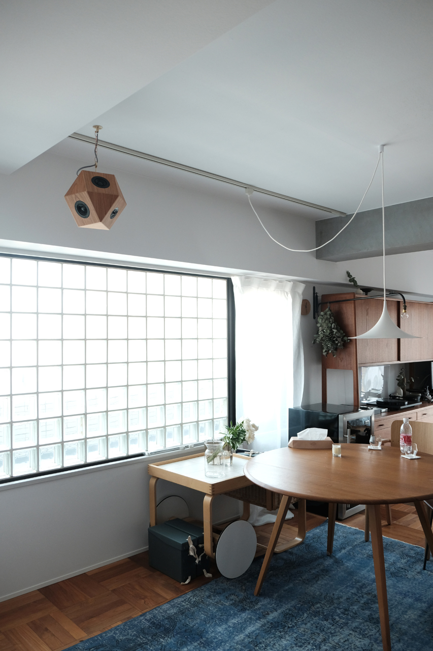 築30年のビンテージマンションをフルリノベーションした兵庫の住宅I邸に”sight“を納品しました。ブロックガラスやタイル、照明や家具のひとつひとつを丁寧に選ばれた空間に、14面体がしっくりはまりました。