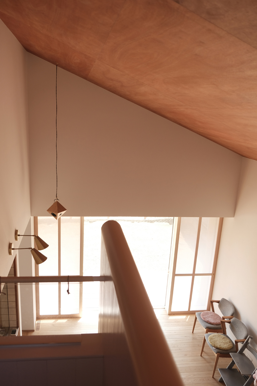 設計は設計工房フウカさん。空気を循環させるために計算された勾配や吹き抜けのおかげもあって、音も家じゅうを循環します。2階にいても遜色なく音楽を楽しめるのが嬉しい。