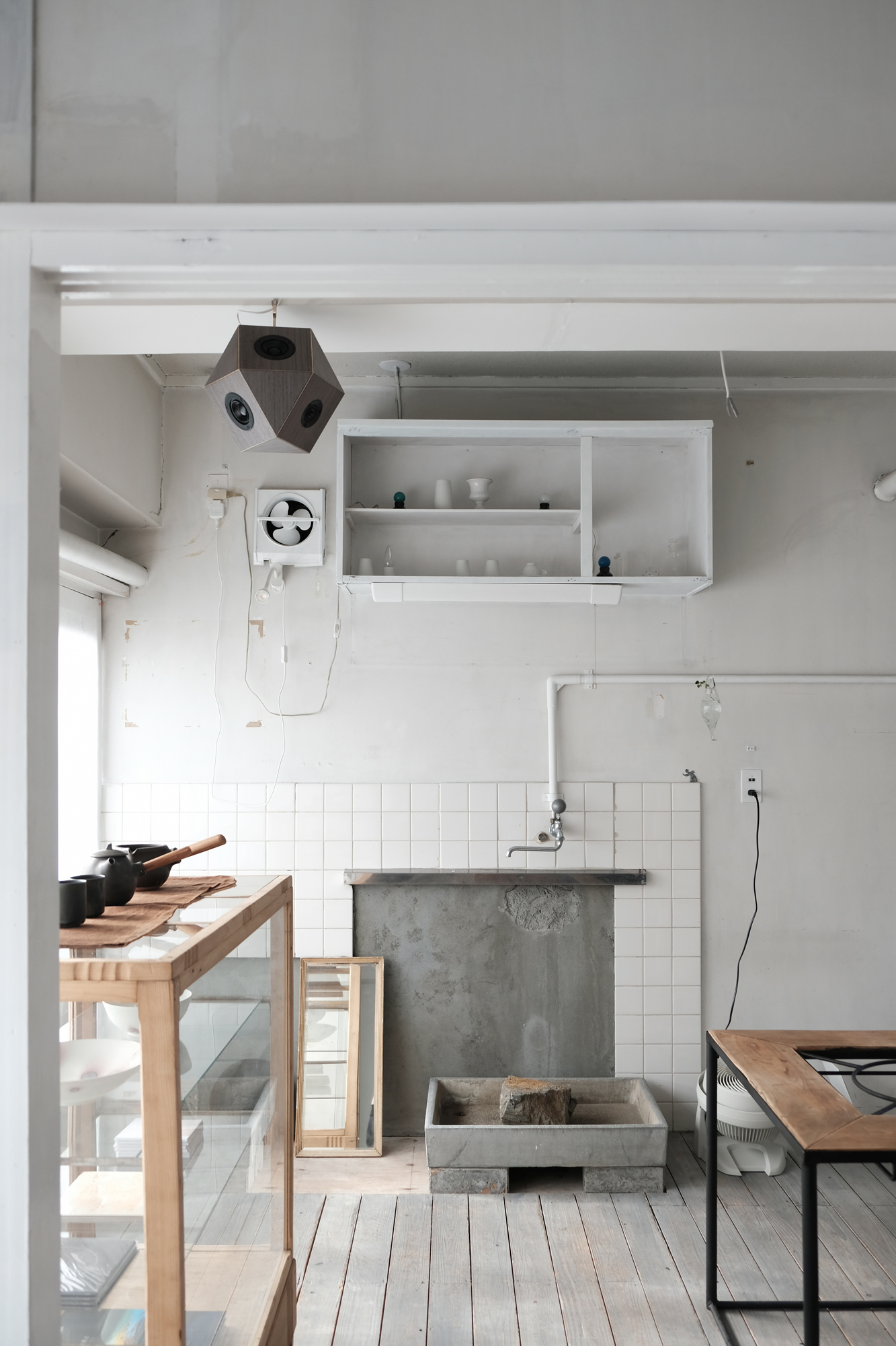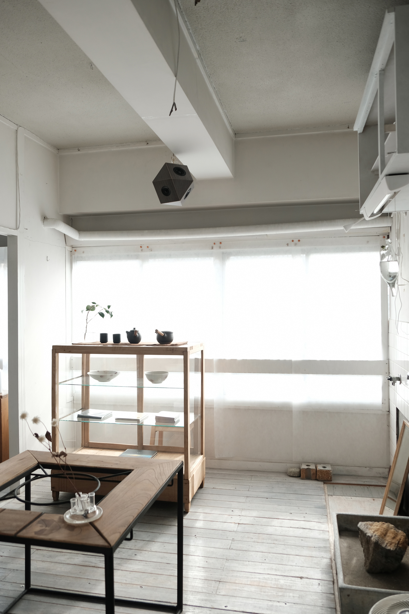 レトロなビルの一室、元々は服飾デザイナーのアトリエだった店内には明るい光が入り、まるで絵画のような陰影。彩度の低いコトグレー仕上げが馴染みます。