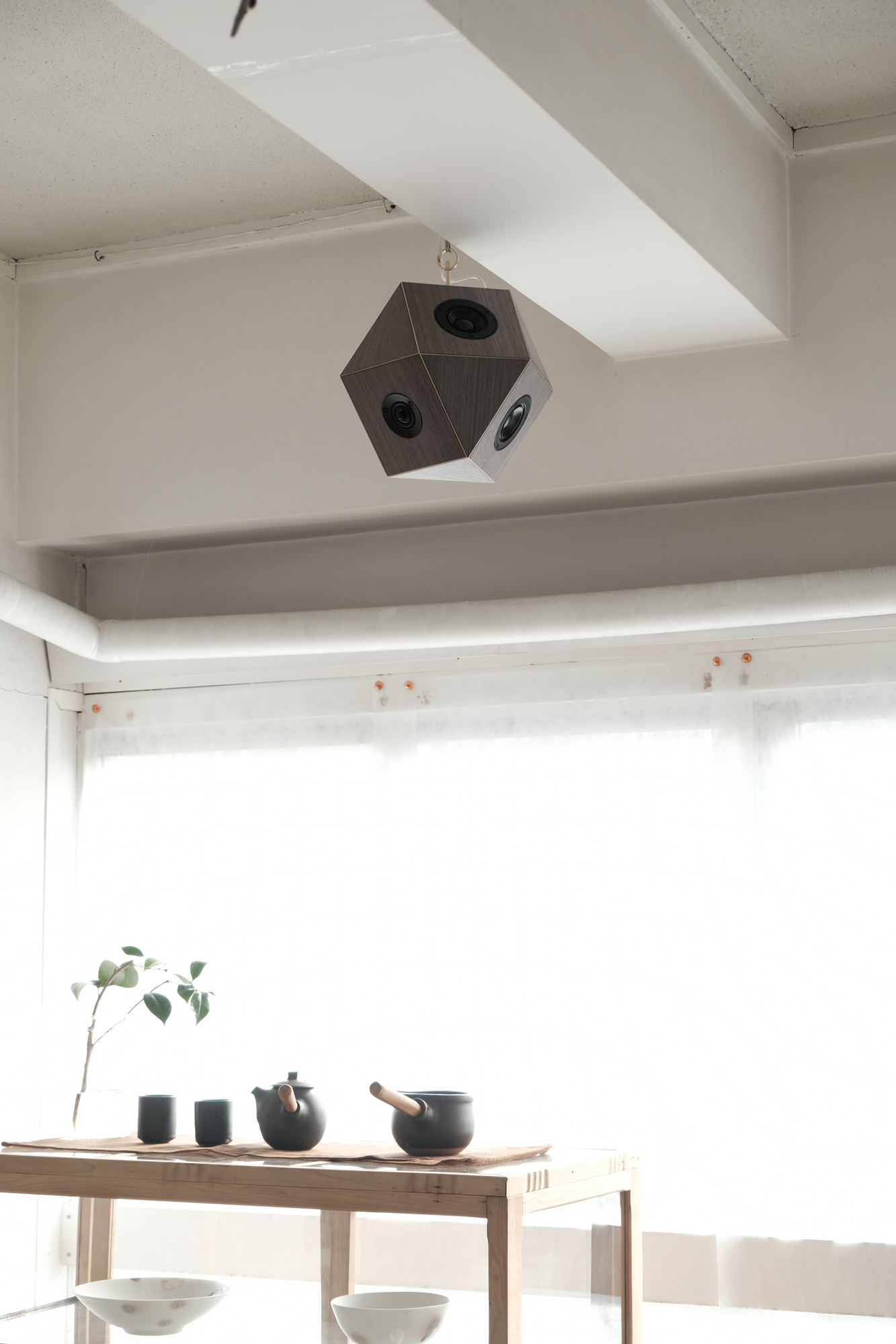 福岡は筥崎の、衣をテーマにしたギャラリー「䒾々」に14面体スピーカー”sight“を納品いたしました。