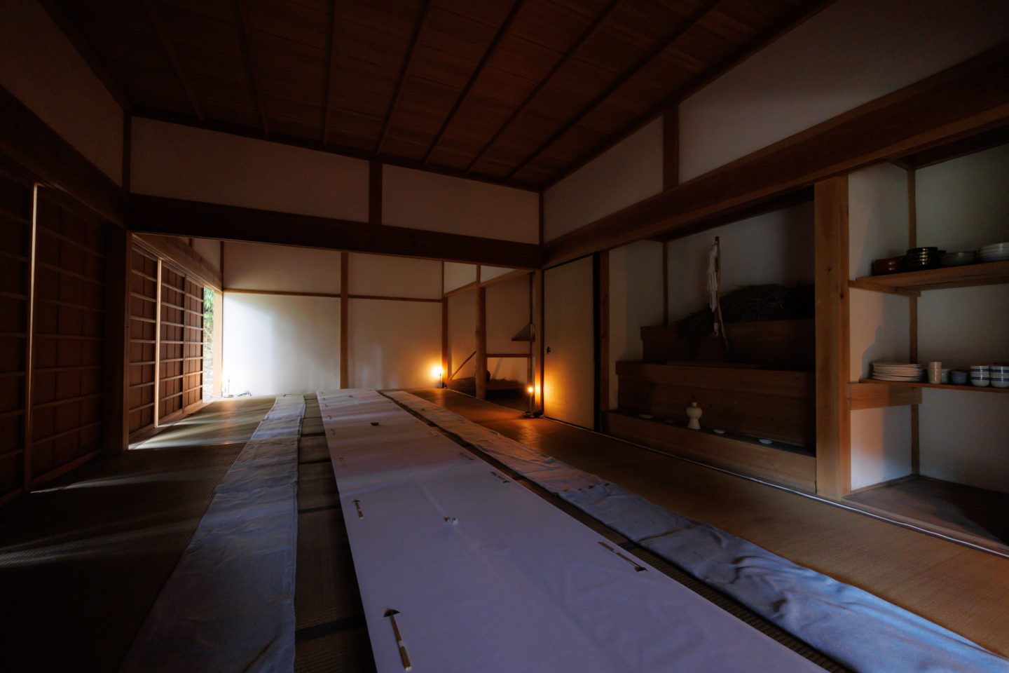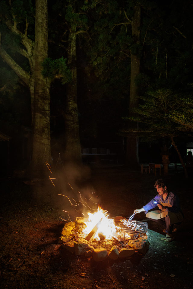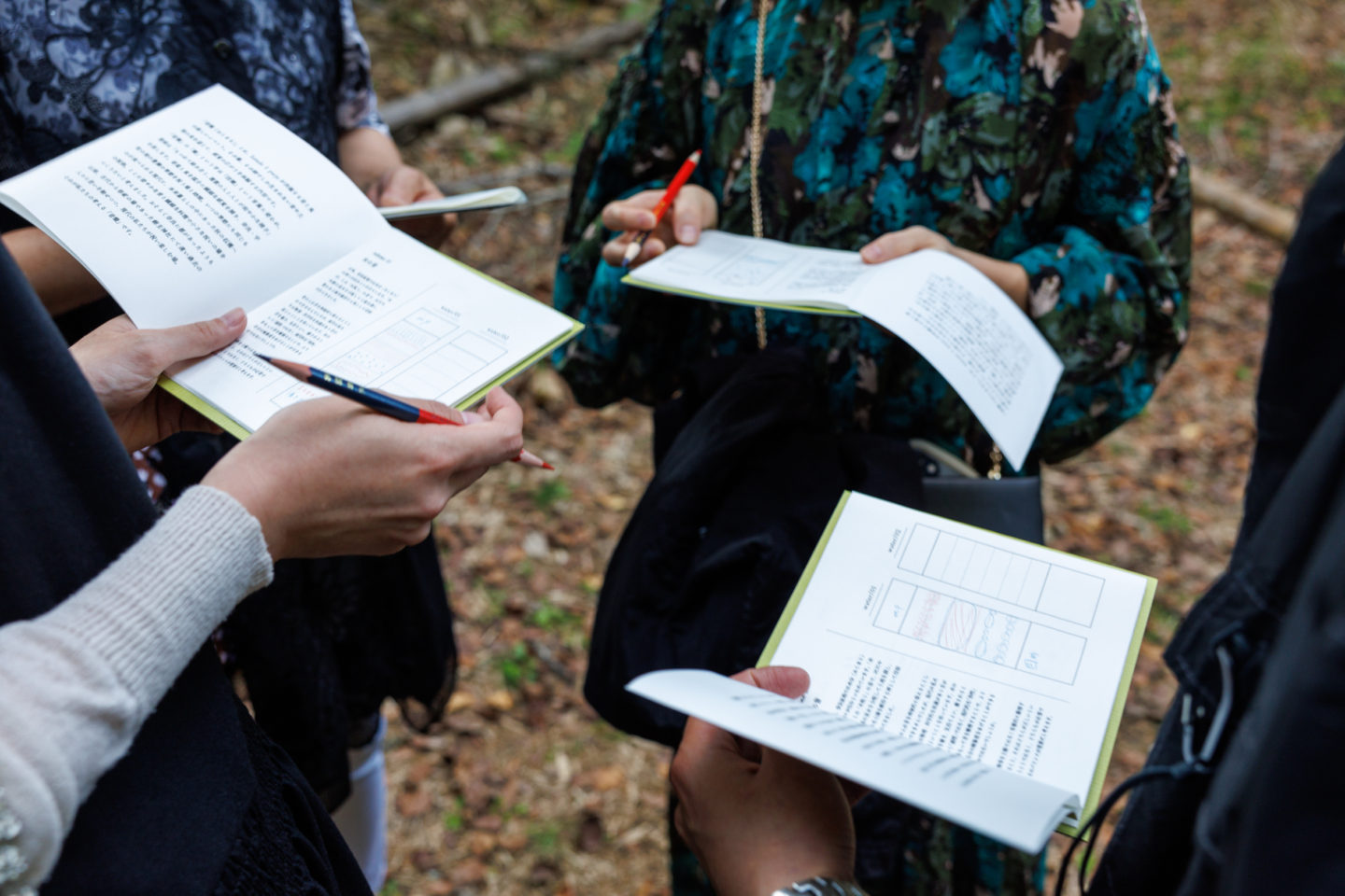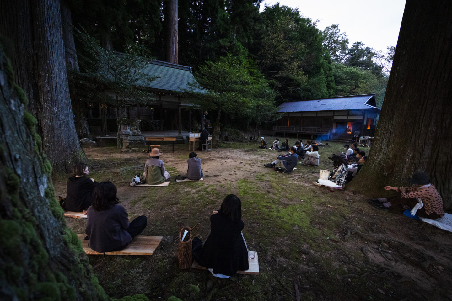集合場所である栗の木の下に続々と集まる参加者の方々に、ウェルカムスイーツとして振る舞われた栗のお菓子。そこに立つ栗の木々からPurjeの志帆さんが毎朝、この日のために採ってきたものです。優しい味に気持ちのよい風を感じながら、まだ残暑が厳しい火照ったからだを潤わせ、いよいよ始まる音欒に皆どこか緊張している様子でした。