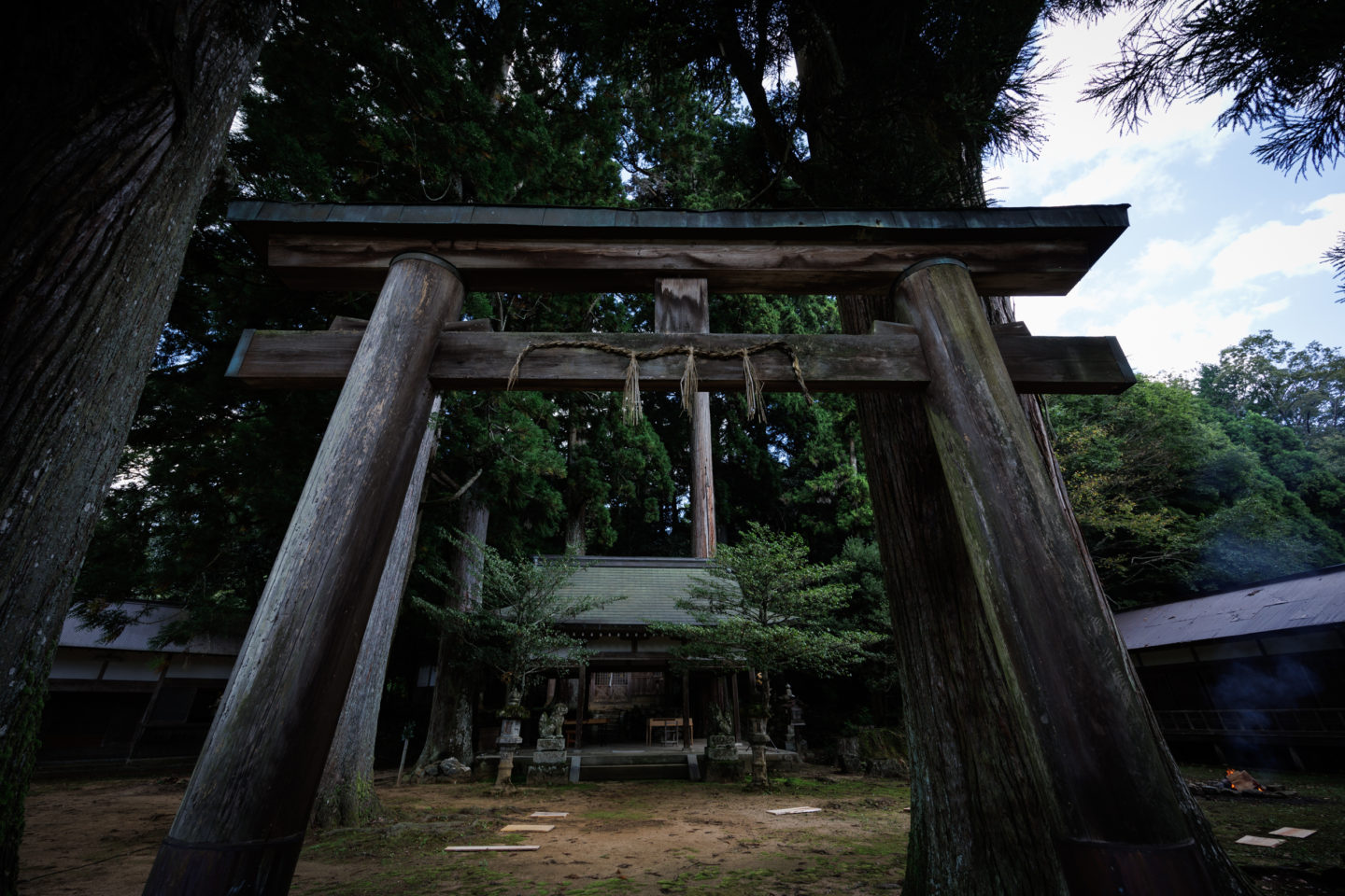 神社から社の背後の山頂にある白色の巨岩を御神体とする祭祀場であった神社の境内には杉の巨樹が聳え立ち、神秘的な雰囲気が満ち満ちた場所。