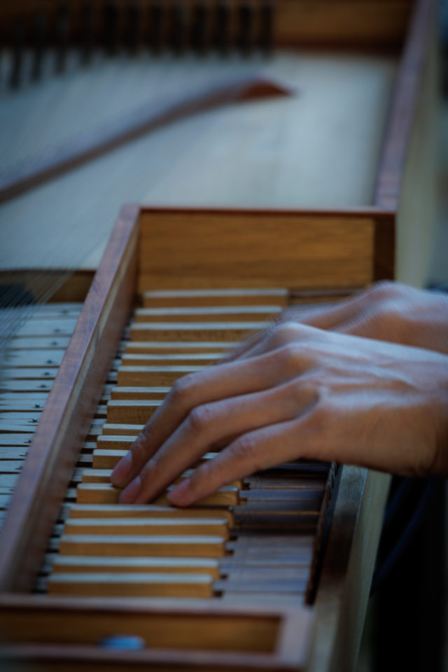 クラヴィコードは14世紀に考案された鍵盤楽器で、とても小さな繊細な音を奏でます。