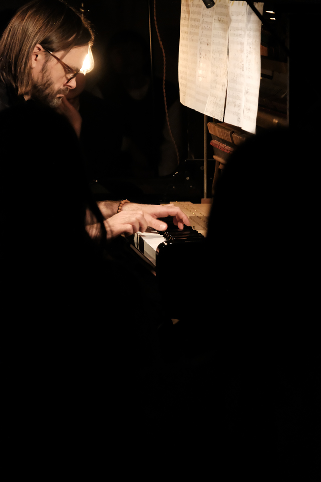 今回、listudeに普段置かれているアップライトピアノを使用。調律はアトリエ ピアノピアの小川さんにお願いし、綿密なコミュニケーションを通してスワヴェク氏の音をベストな状態で鳴らすピアノを作り出してくれました。蓋を外し、ピアノそのものが露わになったなかなか見ないスタイルでの演奏でしたが、常識にとらわれず、あの場にいた誰もがよりよい一音の響きを求めていたからこそ、素晴らしい演奏会になったと確信しています。60名というlistudeでは大規模の演奏会でしたが、ピアノを取り囲むようにセッティングし、スワヴェク氏の技法が間近で体感できる至極の空間を演出し、この貴重な一夜を存分に満喫することができました。