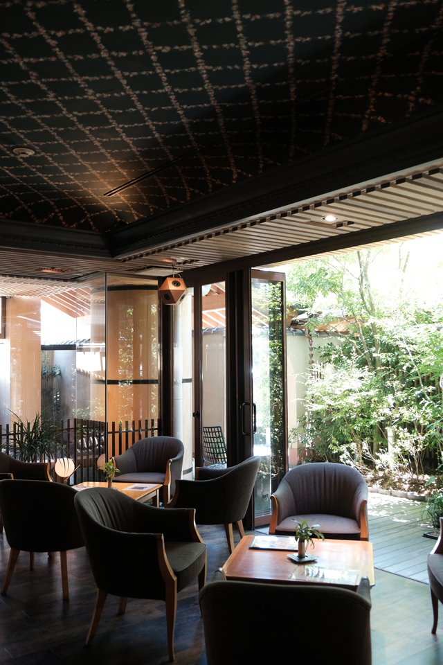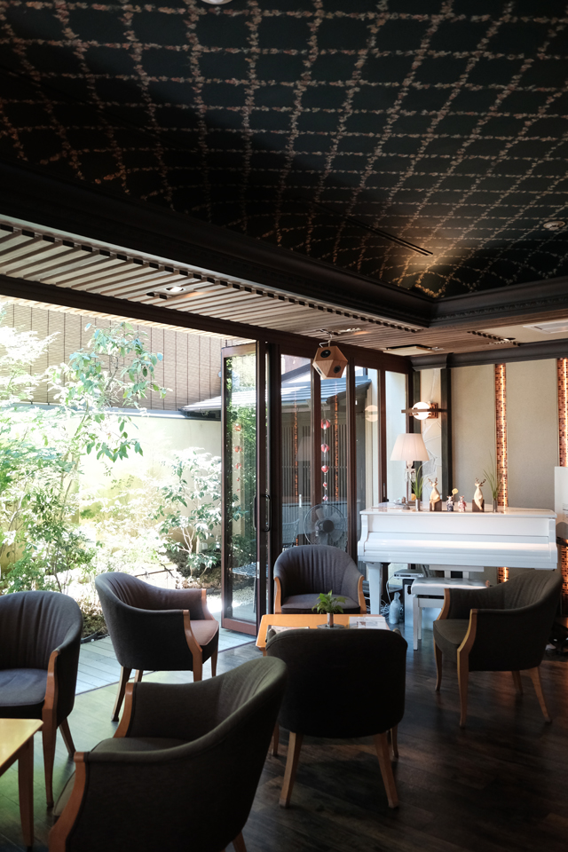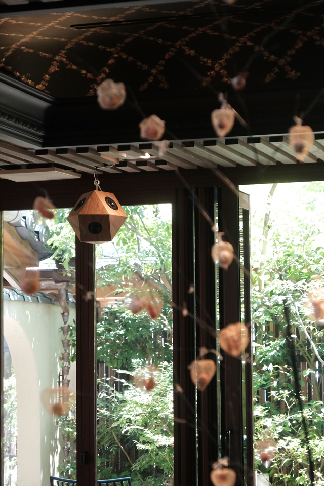 海外のゲストも多いこちらでは、内装や小物など積極的に奈良の作家の作品を扱い、よりローカルな魅力を伝えようとされています。窓際の両サイドにスピーカーを吊るすと、庭がステージのように見え、緑の美しさが目に飛び込んできます。