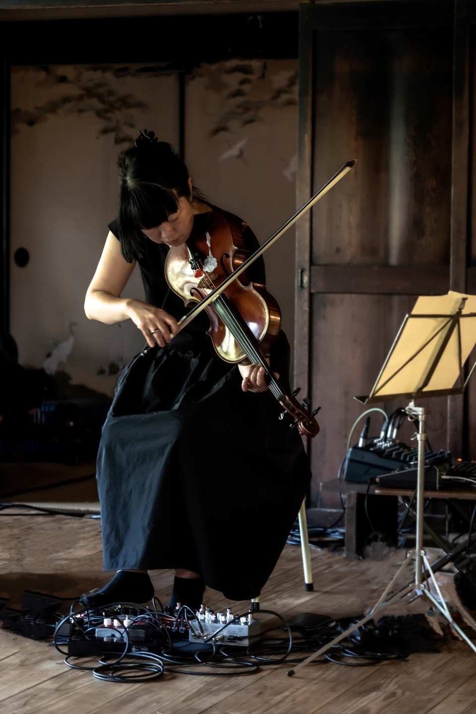 まるで波の声を聴いているかのような、弦楽奏者/波多野敦子のソロ・パフォーマンスを開催いたします。リアルタイムに構築される幾重ものストリングスのレイヤー、緩やかに漂うような儚いヴァイオリンの音色や、空間を埋め尽くす圧倒的な弦楽アンサンブルまで、5弦ヴィオラとエレクトロニクスを用いて自由自在に奏でます。約3年ぶりとなる関西での演奏をどうぞお見逃しなく!
