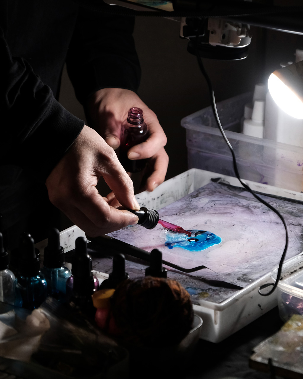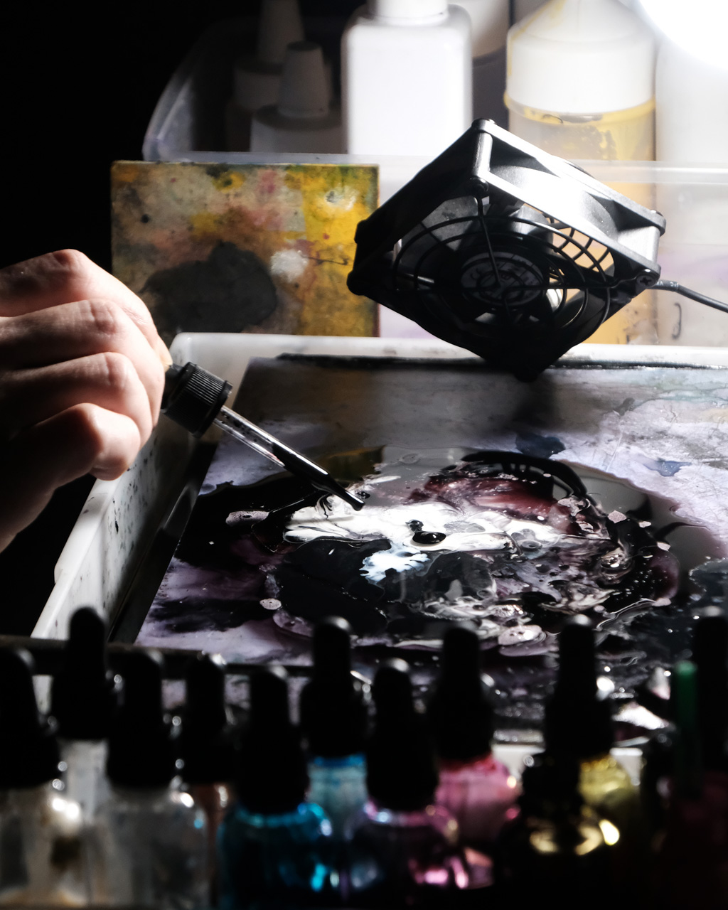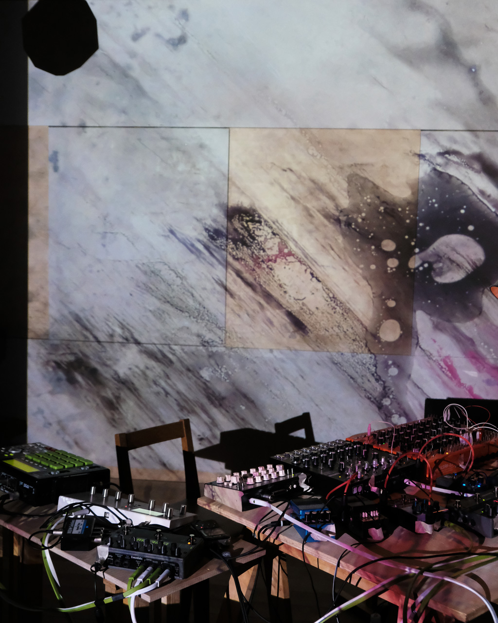 アンダーグラウンドに潜む見えない・聞こえないサインを捉えジャーナリズムに発信するベルリン拠点のドキュメンタリー&カルチャーマガジン「MOLS magazine」が企画する今回の一時帰国ライブは、Keiji Matsuoka(nuee)による液体を使ったライブドローイングと共に、聴覚からも視覚からも心地よい刺激を感じられ、現代社会における日々の緊張を優しく溶きほぐす、まさに「治癒」のような時間を感じることができました。