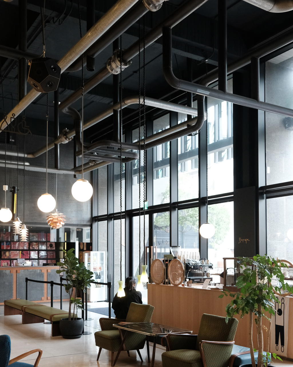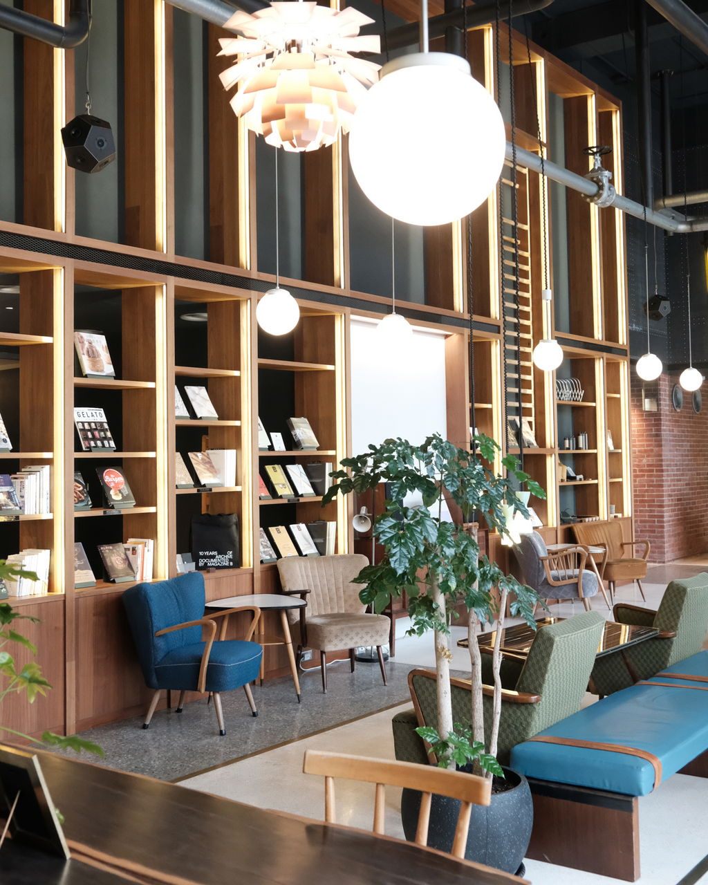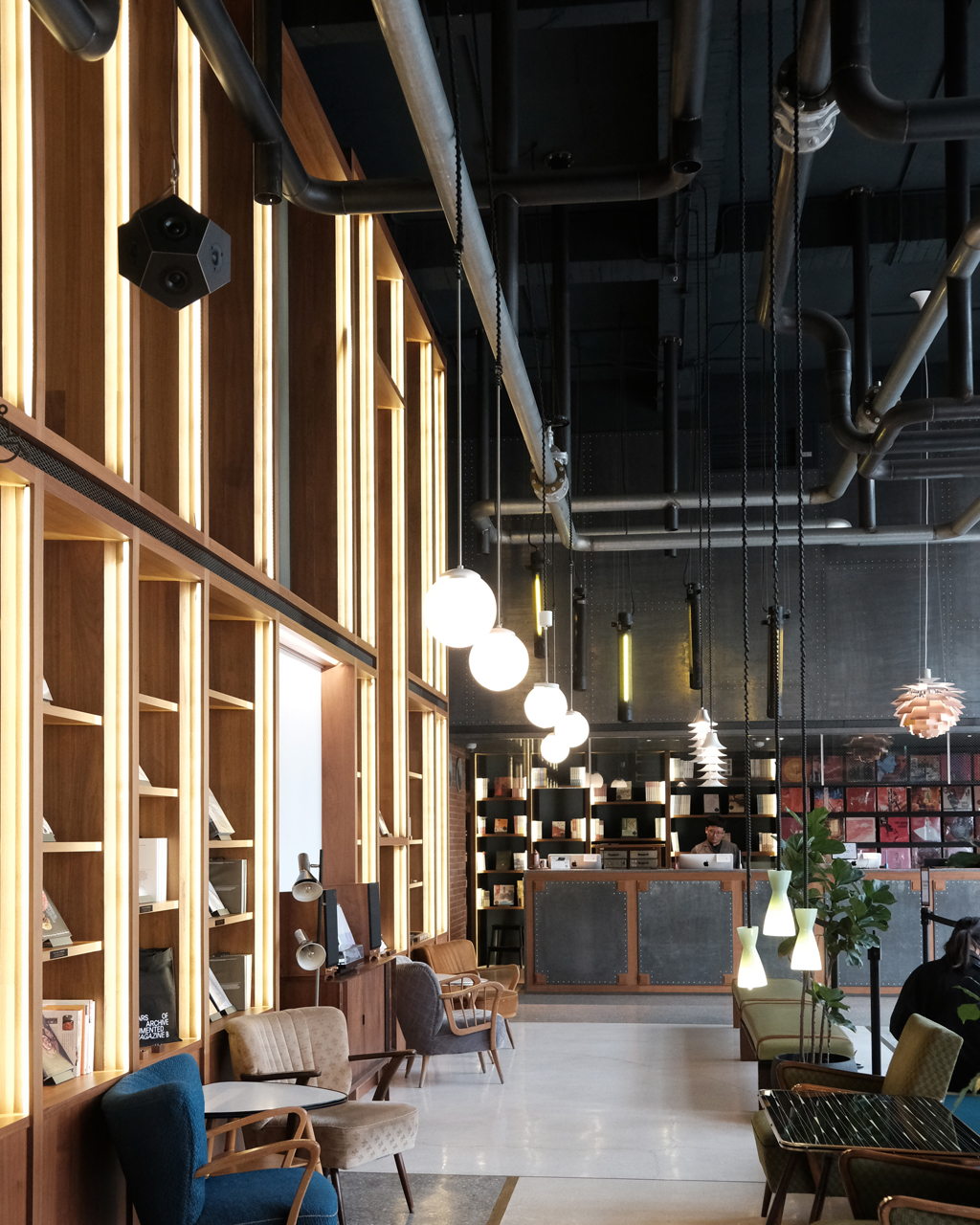 ホテルのフロントであると同時に、24時間営業の本屋「粅粅書BBBooks」となっているこの空間。宿泊者だけでなく地元民や観光客も自由に入ることができ、コーヒーを飲みながらゆっくり過ごすことができます。開放感のある高い天井の空間に、柔らかく艶っぽい音が響き渡ります。