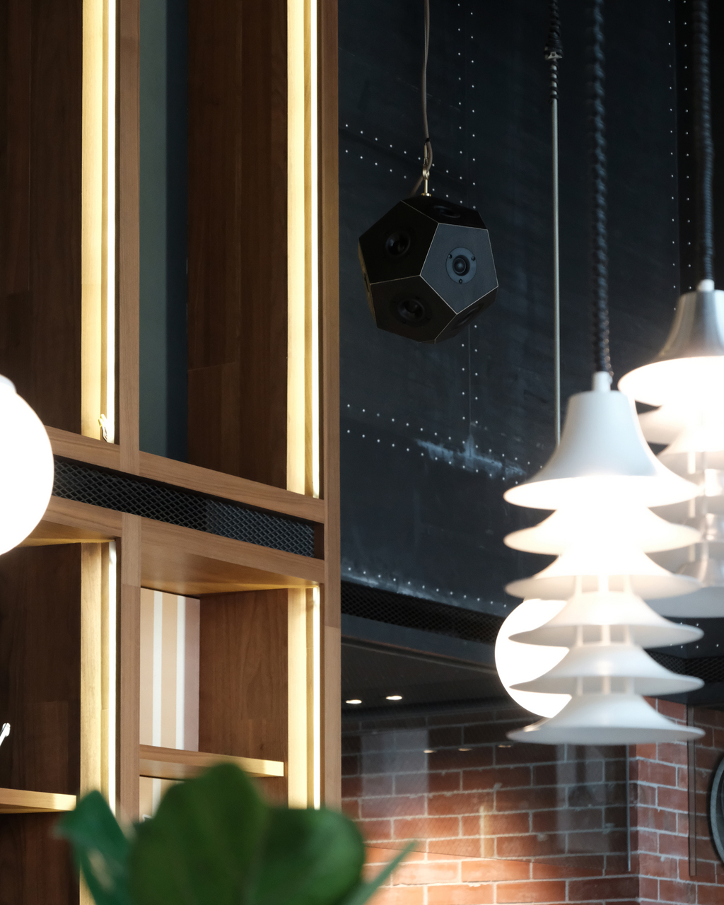 台湾の伝統家屋を彷彿とさせる赤レンガとインダストリアルな内装にボグオークのシックな仕上げが、まるで最初からそこにあったかのように自然に馴染んでいました。設置早々、出入りする人々がスピーカーに気付き見上げる姿が印象的でした。