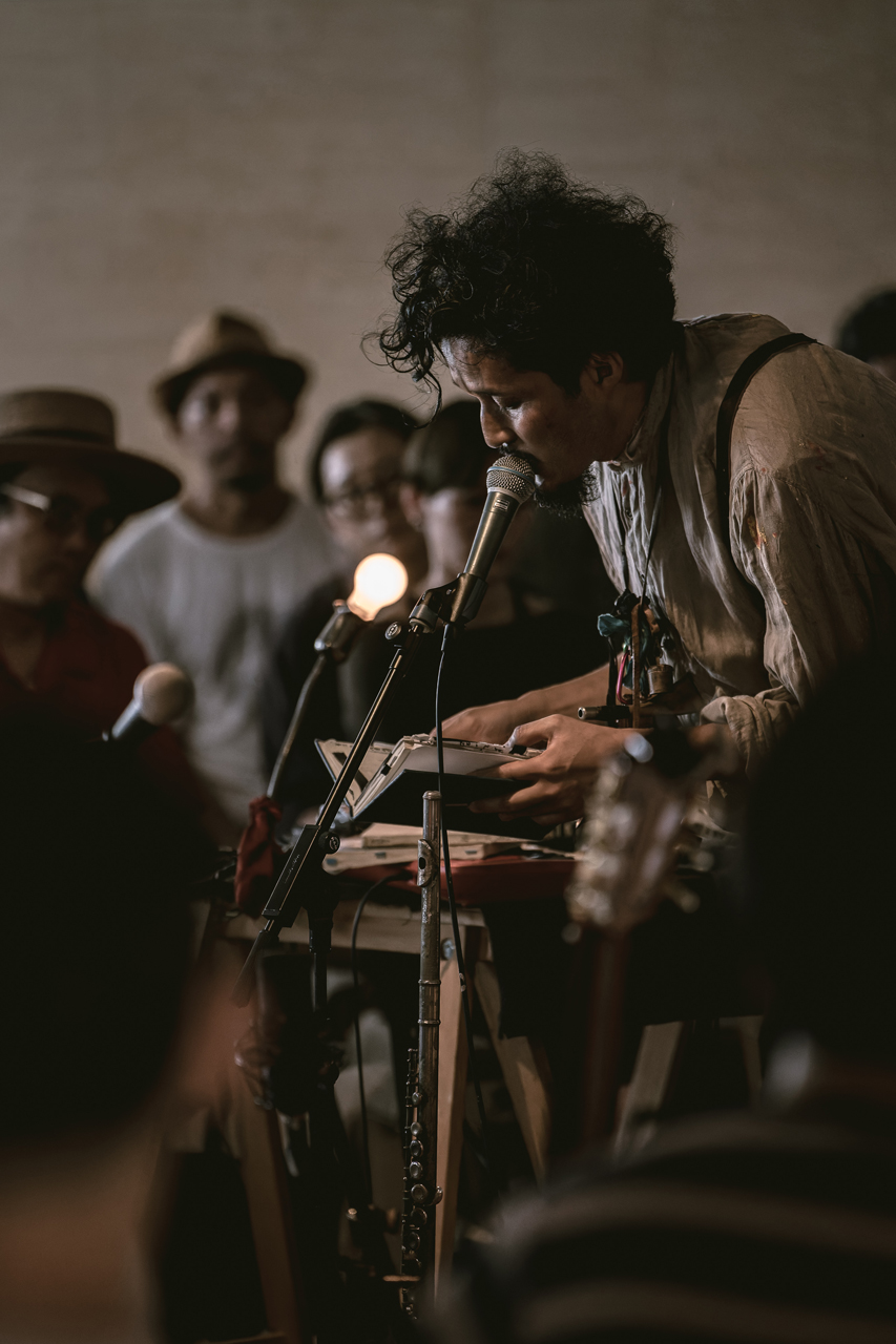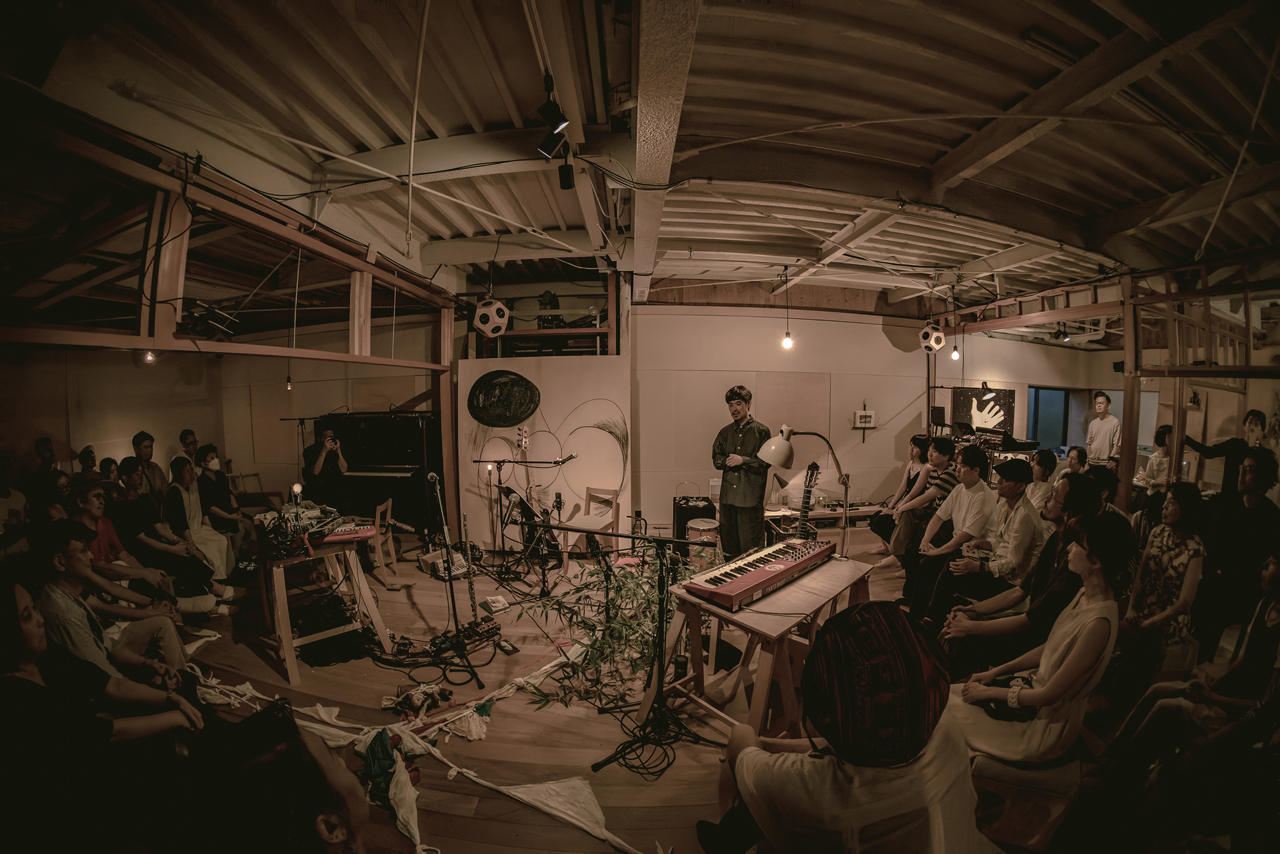 出演者には、オオルタイチ、五味岳久(LOSTAGE)、曽我大穂(仕立て屋のサーカス)と奈良出身の3人のアーティストを招き、3人が描く『エンディングテーマ』というステージを自由に表現してもらいました。