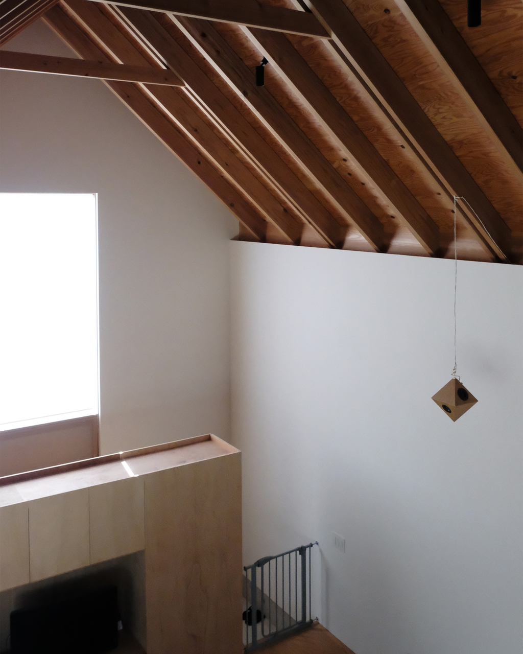 ninkipen!の設計による建物内部は吹き抜けを介して一体的に繋がり、音楽が家中を満たします。1.5階建ての高さに響く音はどこまでも自然で、目の前にある小学校の校庭から聞こえる子どもたちの声と合わさり、安らかな時間が流れます。
