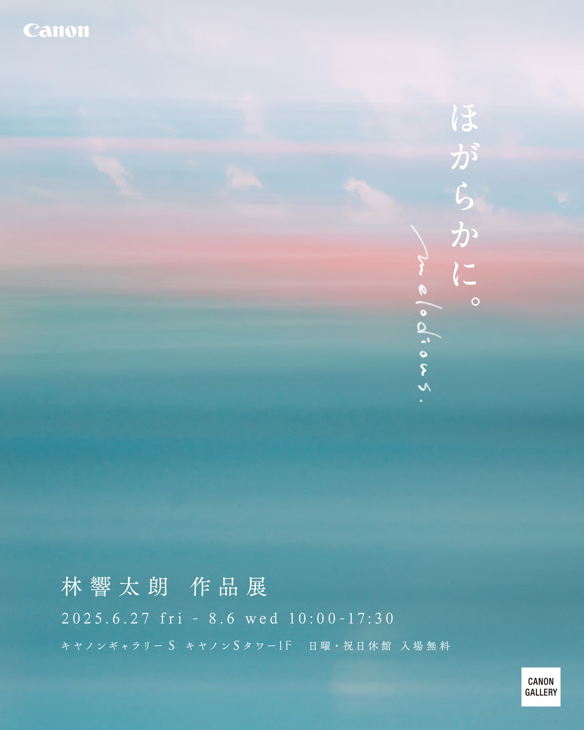 6月27日(金)から8月6日(水)まで、品川のキヤノンギャラリー S にて映像監督/写真家・林響太朗氏の作品展「ほがらかに。」に、音響として参加しています。