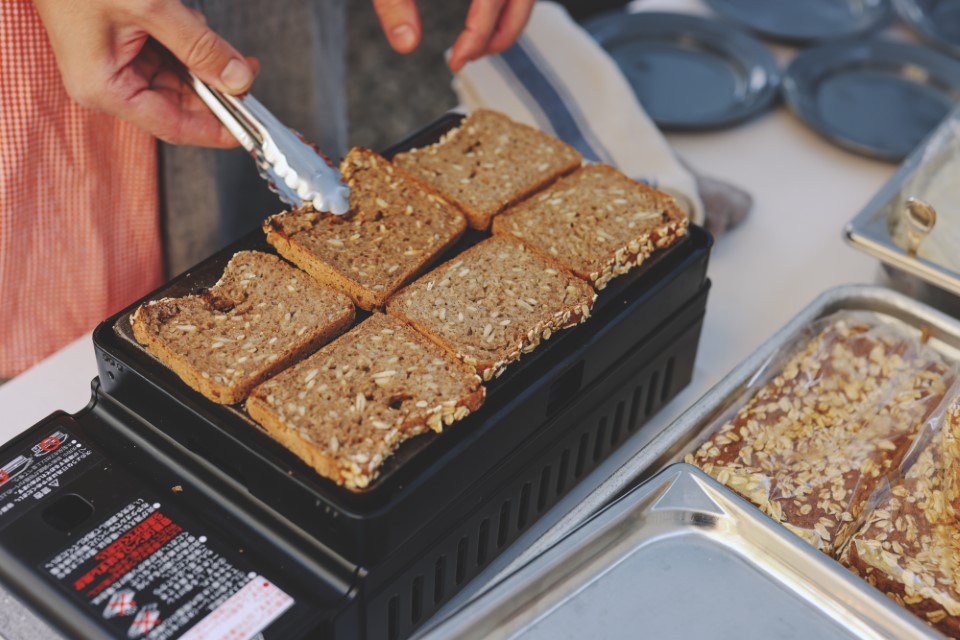 乾杯後は、私たちが大好きなお店による豪華なランチタイム。北杜からはsundaysfood、MUKU、甲府からもNODO、ete、AKITOCOFFEE、そしてホール内では北杜のワインショップSoifと奈良のPurjeによるドリンクコーナーも。