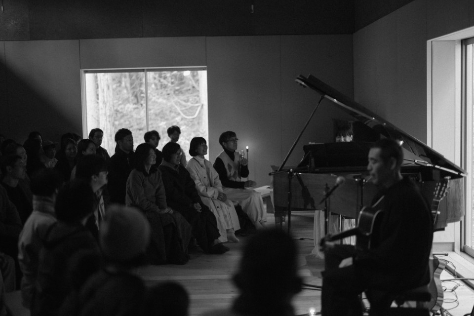 ご飯を食べたあとはホールの中へ。田辺玄さんと森ゆにさんによるコンサートが始まります。奈良・くるみの木の石村さんより譲り受けたグランドピアノの音色をゆにさんが奏で、色々な方がこのホールのために集い、力を貸し、協力してくれたあたたかい想いが空間に満ち満ちていくように感じました。