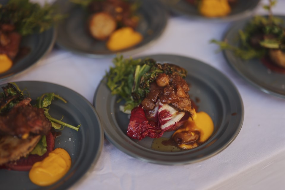 ◎NODO[甲州ワインビーフの炭火焼き]:外は香ばしく中は柔らかく焼きあげた甲州ワインビーフと付け合わせには季節の山梨の野菜を色々な調理にし、ソースは仔牛の出汁をベースにイチヂクのソースの一皿。