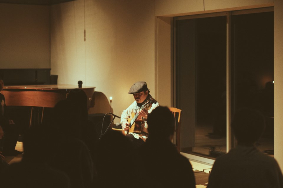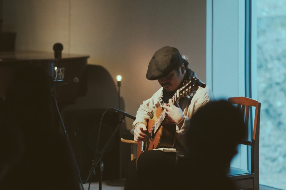 ぴんと張り詰めた空気の中で、柔らかくしなやかに奏でられる6弦ギターの音は、まさに魔法のように様々な音色を奏で、深く私たちの心のなかにしっとりと沈みこむような余韻を残していきました。