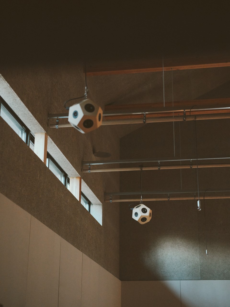 ひとりひとり、作品の意図や録った音のシチュエーションを話しつつ、ホールに吊られた”scenery”6台から作品を再生し、みんなで鑑賞。