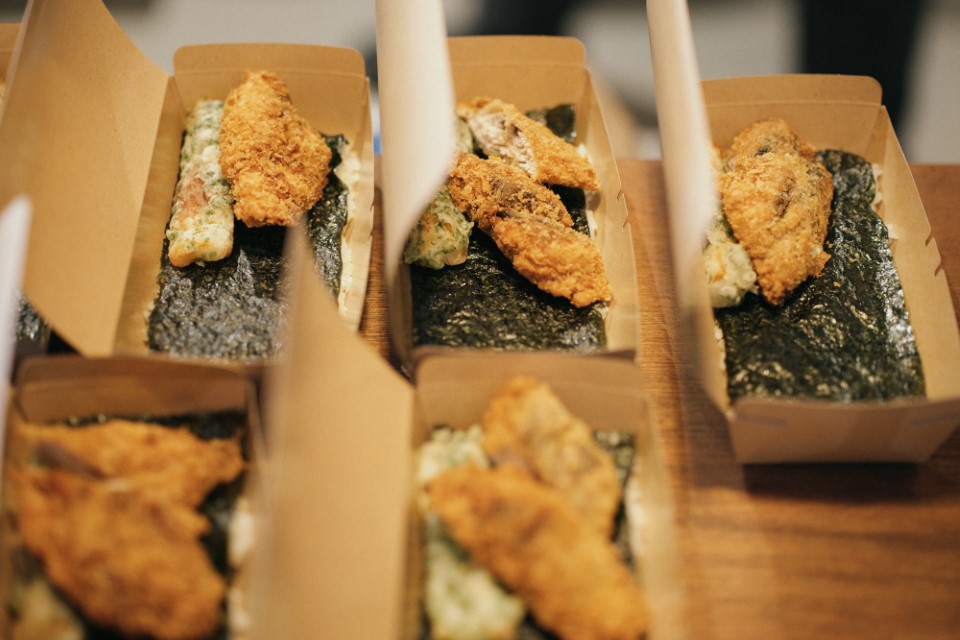 講義のあとは、SALO食堂から料理人/西野聡さん、助っ人/中山翔太さんが作る小田原の海の幸がふんだんに詰まった海苔弁当を食べ、いよいよ録音の実践スタート。