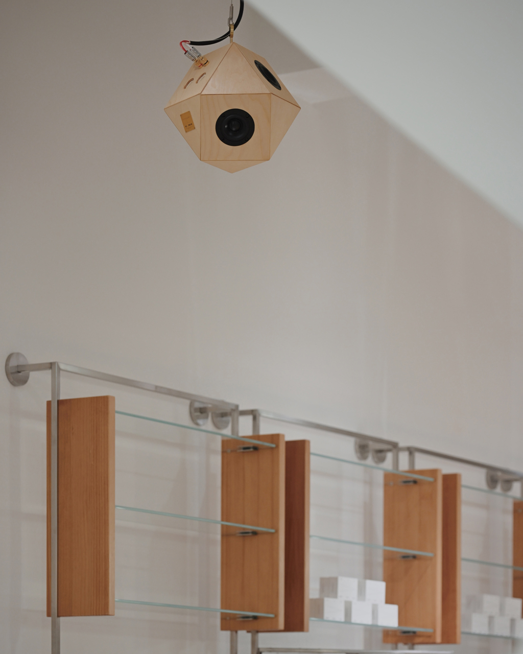 冷ややかなステンレス、透過するガラス、精緻に構成された幾何学的ライン。そこに満ちるのは装飾ではなく、「香り」そのもの。その空間に、14面体無指向性スピーカー “sight” が導入されました。