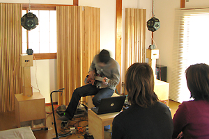 手元が見えたほうが面白いのでは?ということで、急遽アーティストを囲む形に椅子を並べ替え!