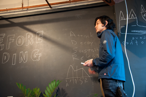 Sonirこと魚住さんは自ら開発したソフトウェアで即興演奏。