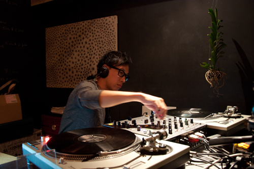 お待ちかねのライブの前に、intext 見増さんによるDJプレー!