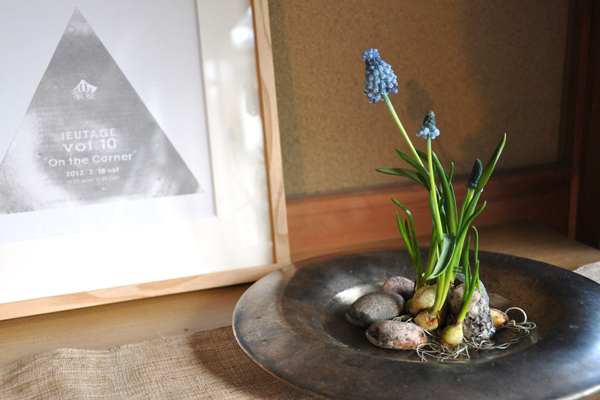 安藤さんの銀彩に「石止め」という手法で生けてみました。「生けた」というよりなんだか育ててるみたいに自然に仕上がりました!