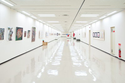 奈良県文化会館の展示室は、奈良県のさまざまな障害者施設のメンバーによる絵画や写真、刺繍などの作品のほか、