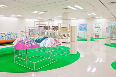 デザイナーとコラボレーションして生まれた傘や長靴などの製品や物販スペースもあり盛りだくさんな会場のひとつです。