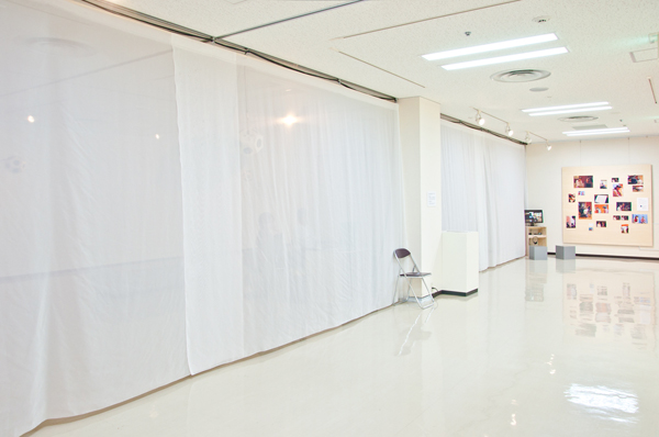 じっくりと作品を味わう場所として、薄いカーテンで仕切った空間をつくりました。