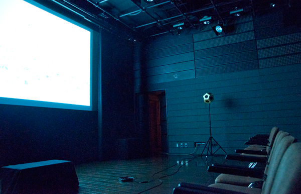 ライブ会場となったシアターでは、前のスクリーンに林さんの「もうひとつの世界」が映し出され、