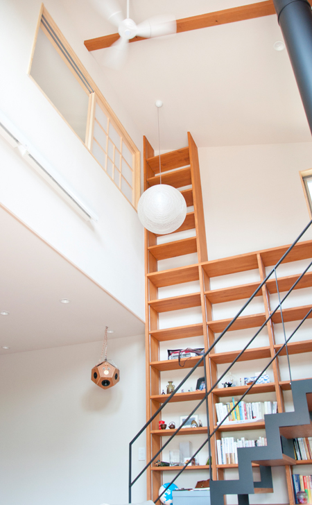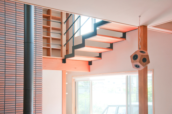 また、天井は斜めで階段や本棚などの反射面が多いため、音響的にもよい設計です。