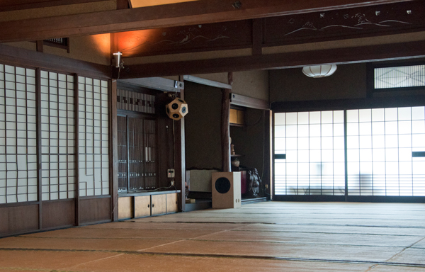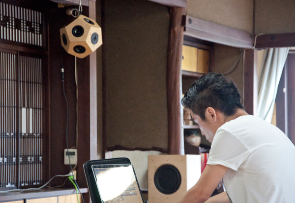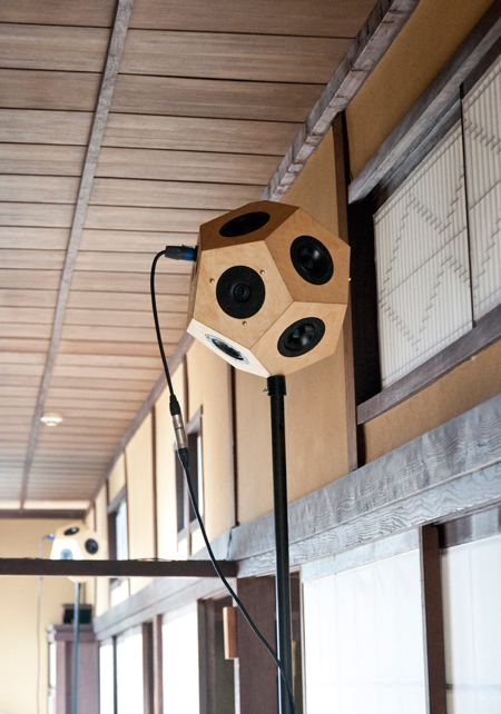こちらの2階にある45畳の大広間に6台の12面体スピーカー”scenery”と2台のサブウーハーをセットしました。
