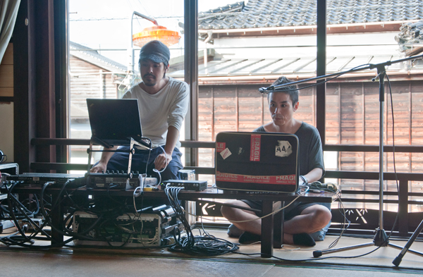 今回はマルチチャンネルで再生されるevalaさんの音と、昭男さんが演奏する生音の境界がなくなるようなパフォーマンスのため、