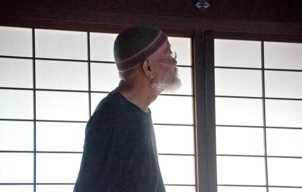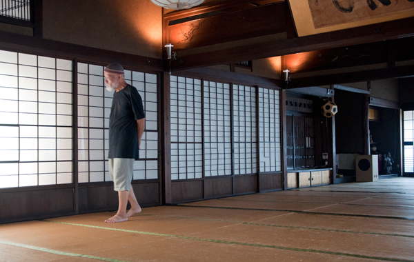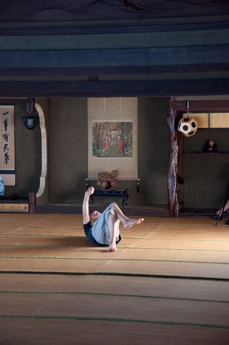 昭男さんはevalaさんの音と空間の空気の動きを確かめるように、ゆっくりとあたりを歩きます。