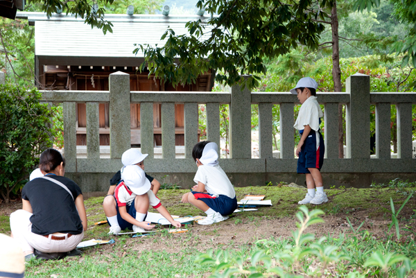 その後、学校を出発し、徒歩10分程の場所にある神社へ。